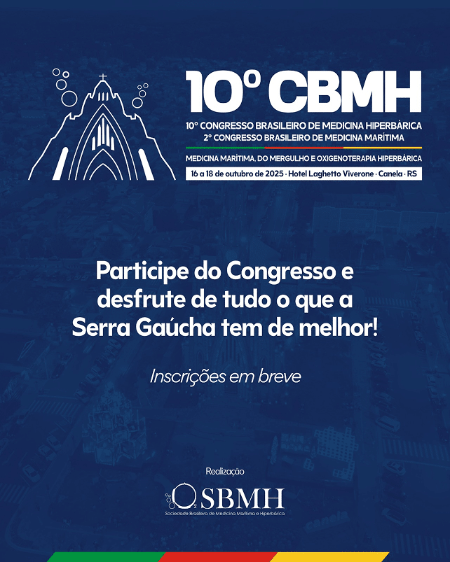 Como benefício para todos os associados da SBMH, firmamos uma parceria com a Undersea and Hyperbaric Medical Society (UHMS), proporcionando descontos para que você possa se associar. Clique para conhecer o benefício.