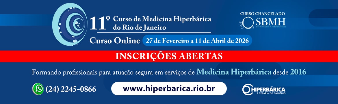 27 de fevereiro de 2026 às 08:00 - 11 de abril de 2026 às 17:00De 27 de fevereiro a 11 de abril de 2026 realizaremos o 11º do Curso de Medicina Hiperbárica do Rio de Janeiro em edição 100% Online, dividido em cinco módulos,
